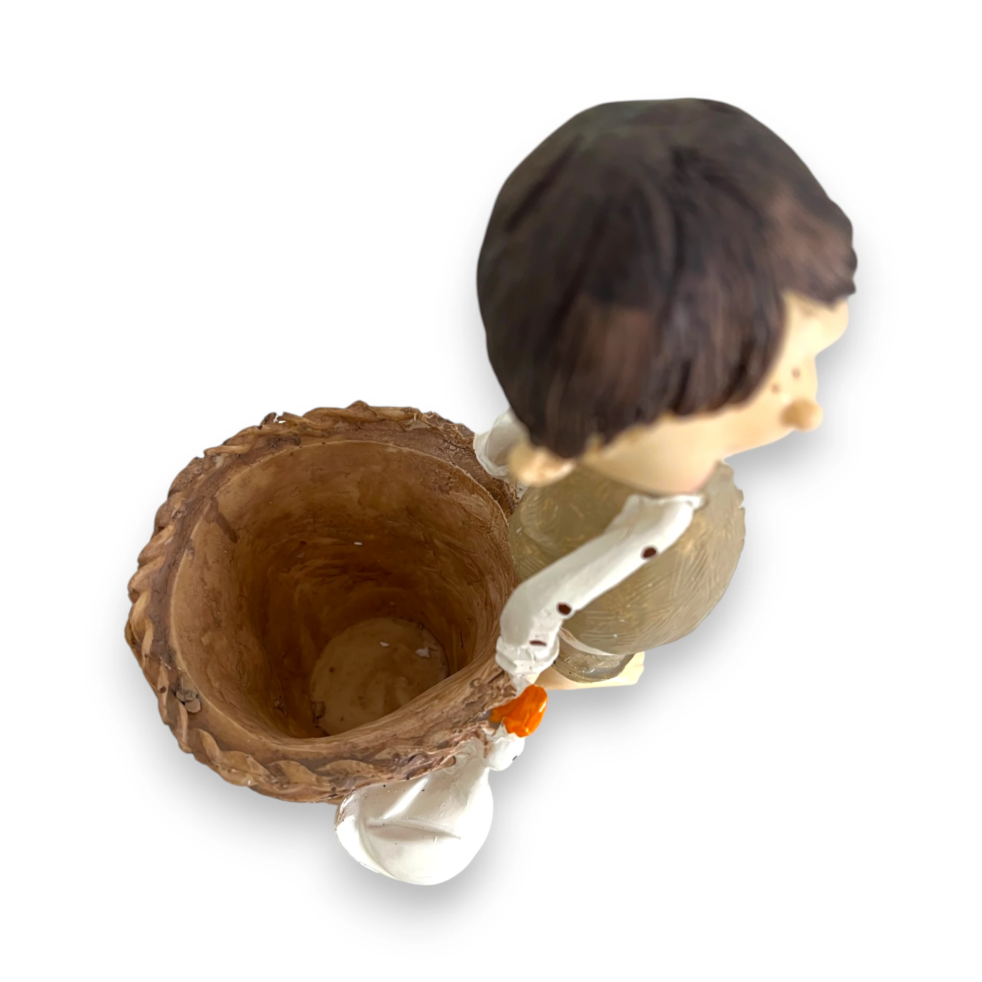 Sevimli Çocuk Figürlü Kazlı Dekoratif Kalemlik | Saksı – 25X15 cm