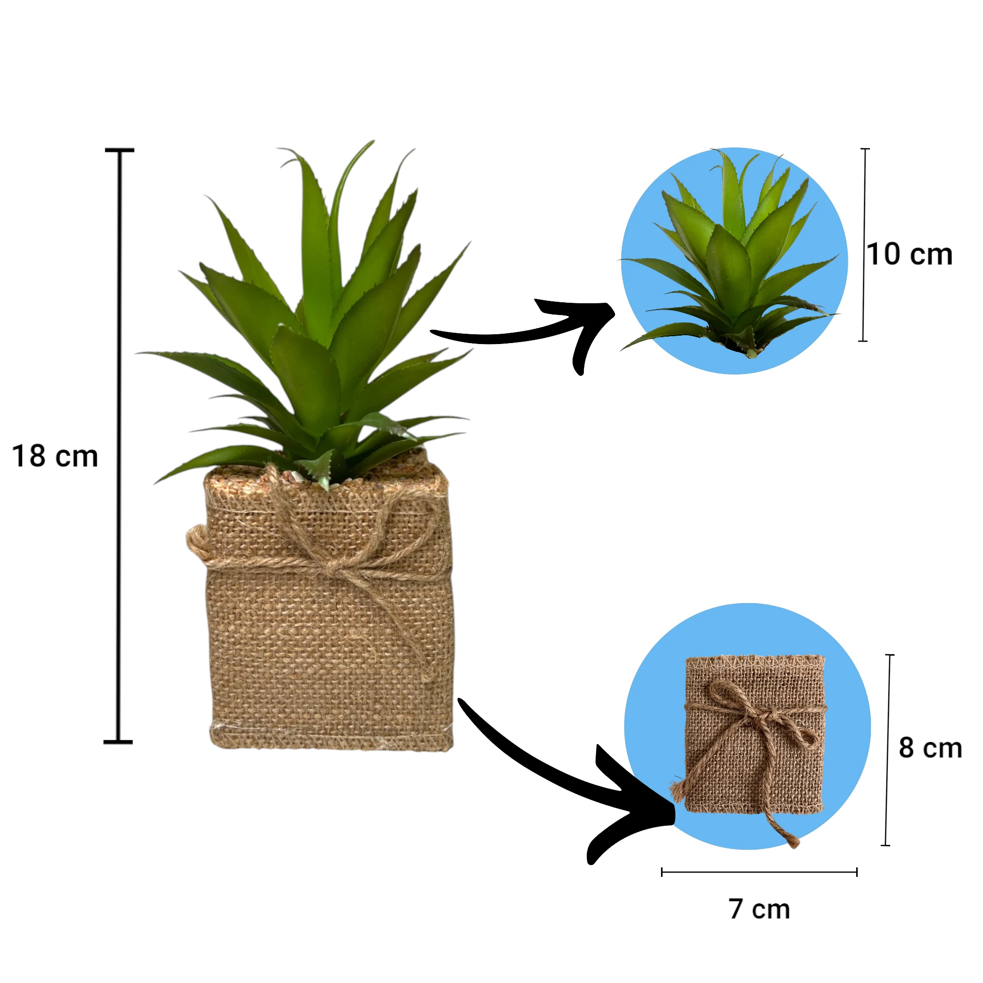 Jüt Saksılı Yapay Bitki Boyutları