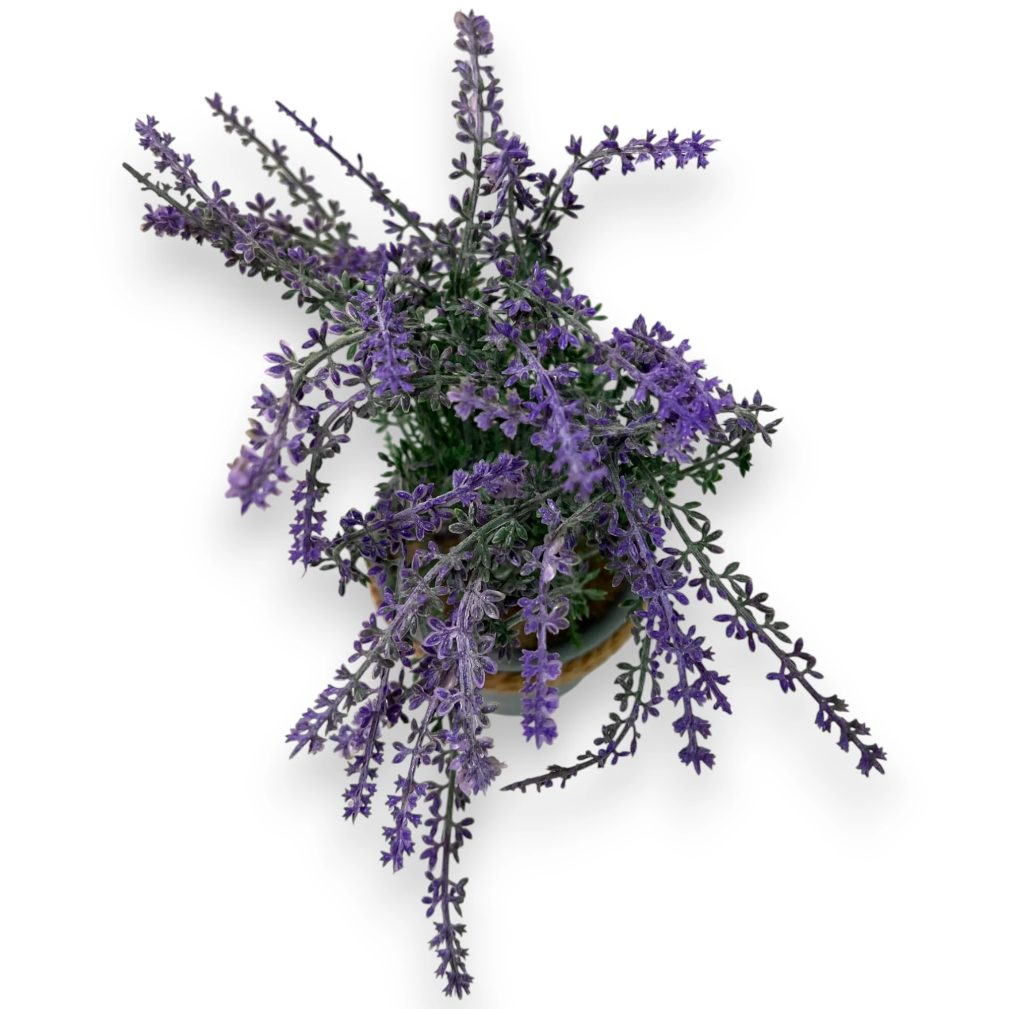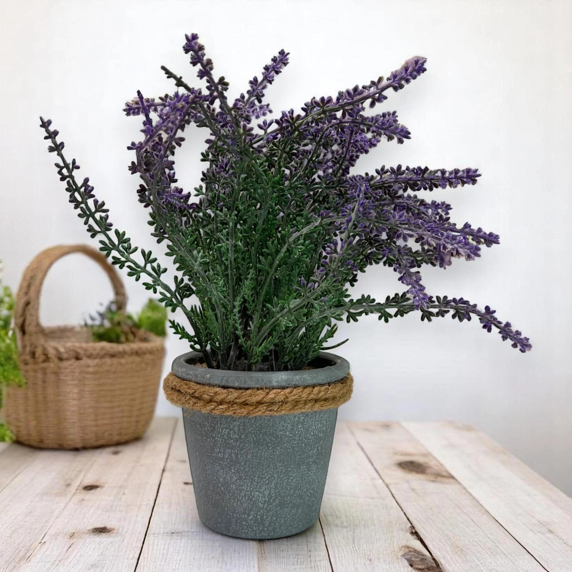 Doğal bir dokunuş katmak isteyenler için plastik saksıdaki yapay lavanta, ev ve ofis ortamlarına ideal bir çözüm sunar.