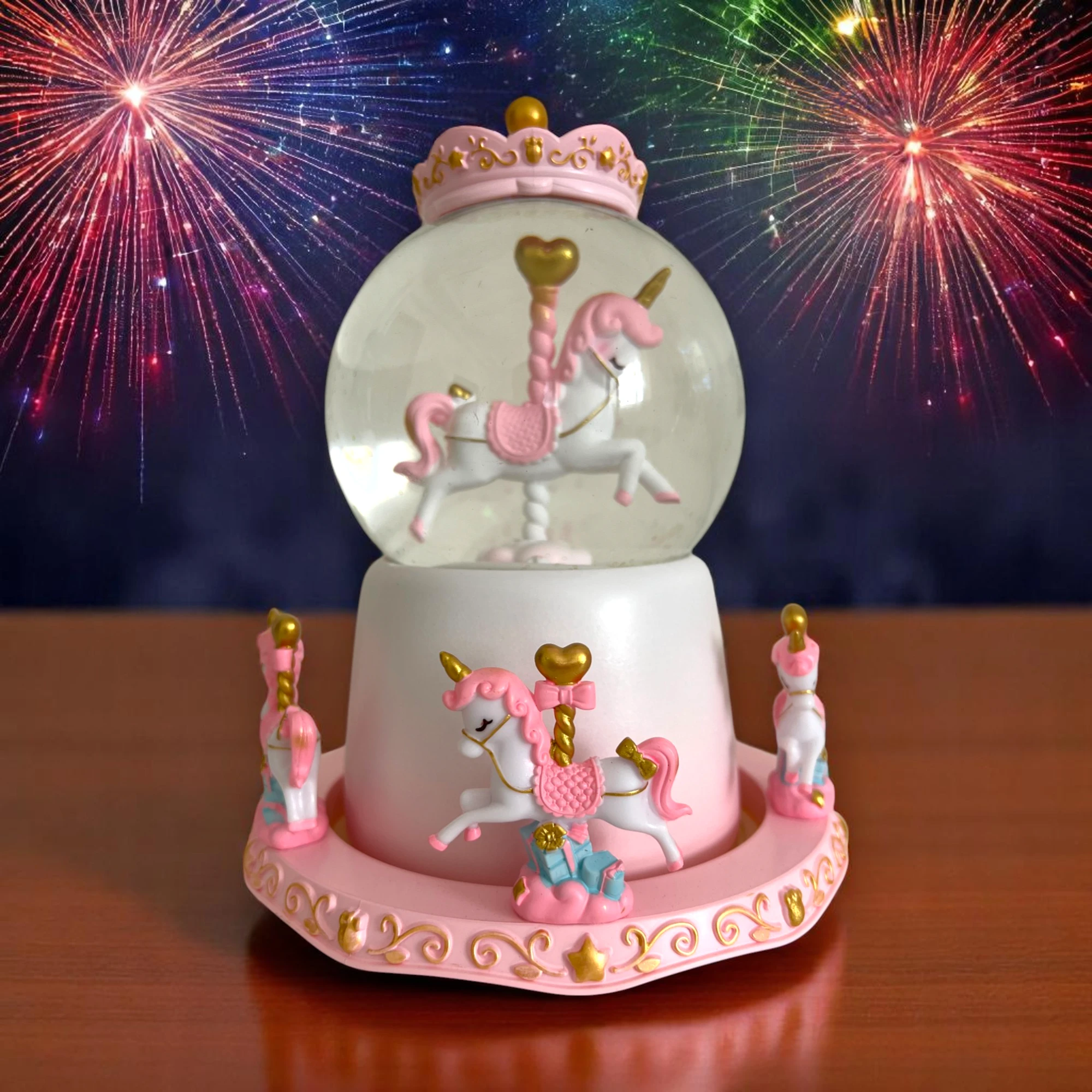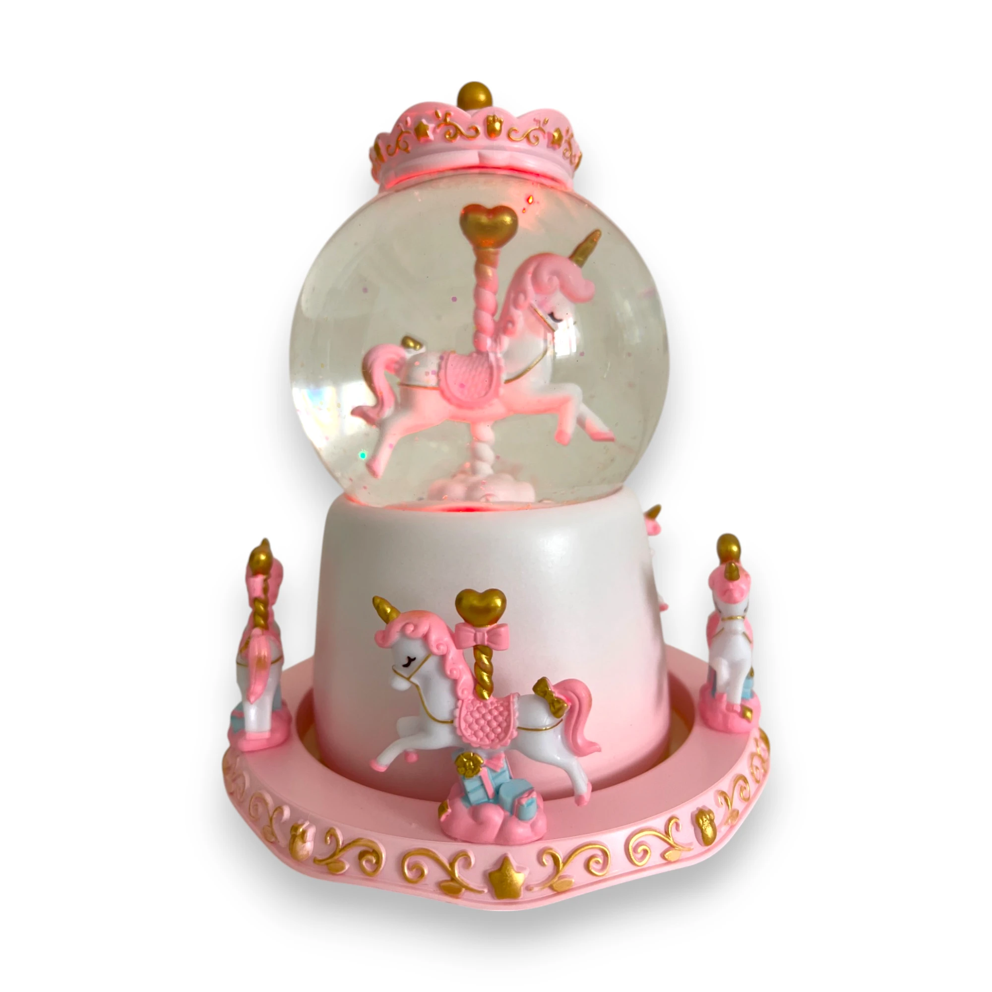 🌟 Unicorn Müzik Kutusu – Işıklı, Pilli ve Simli Kar Küresi