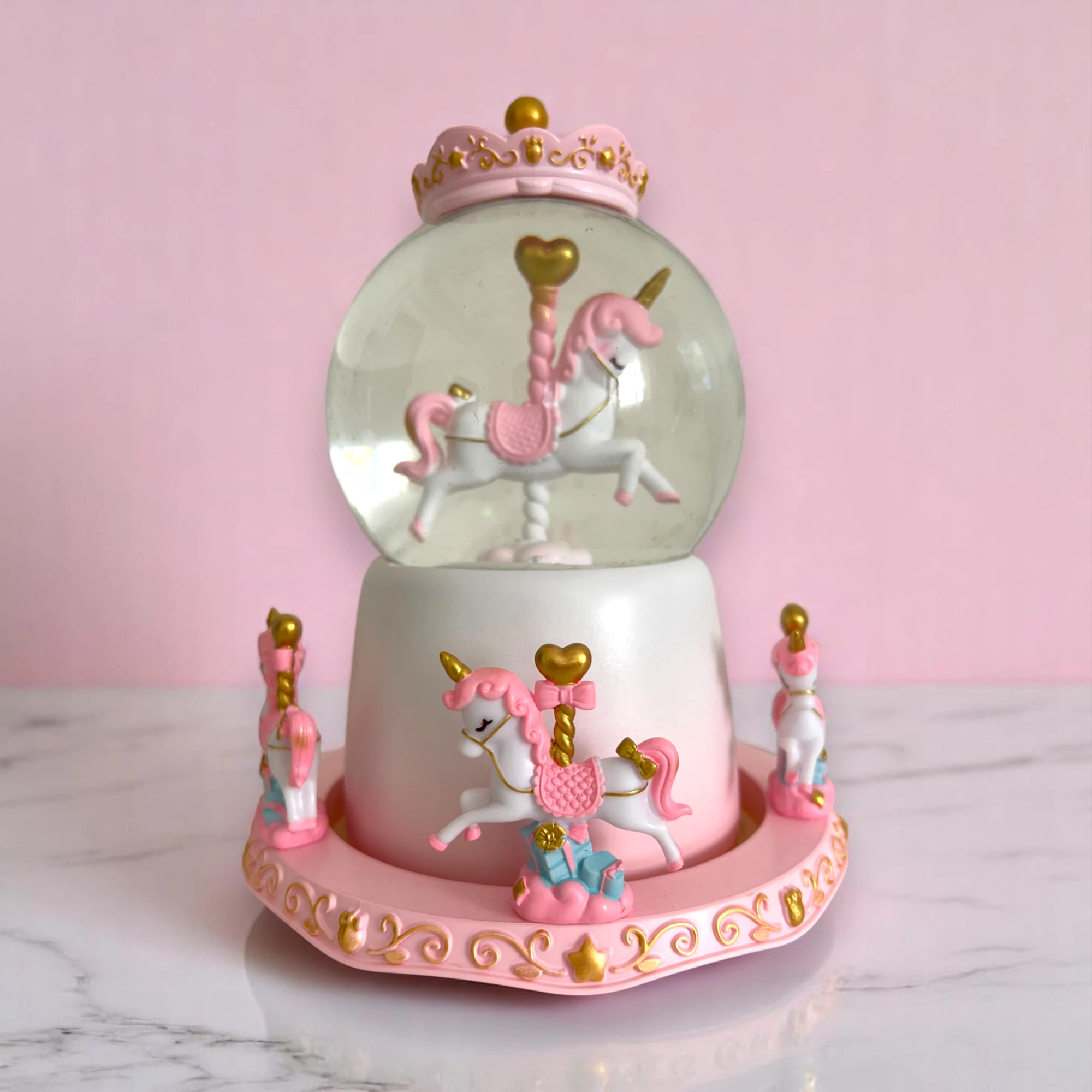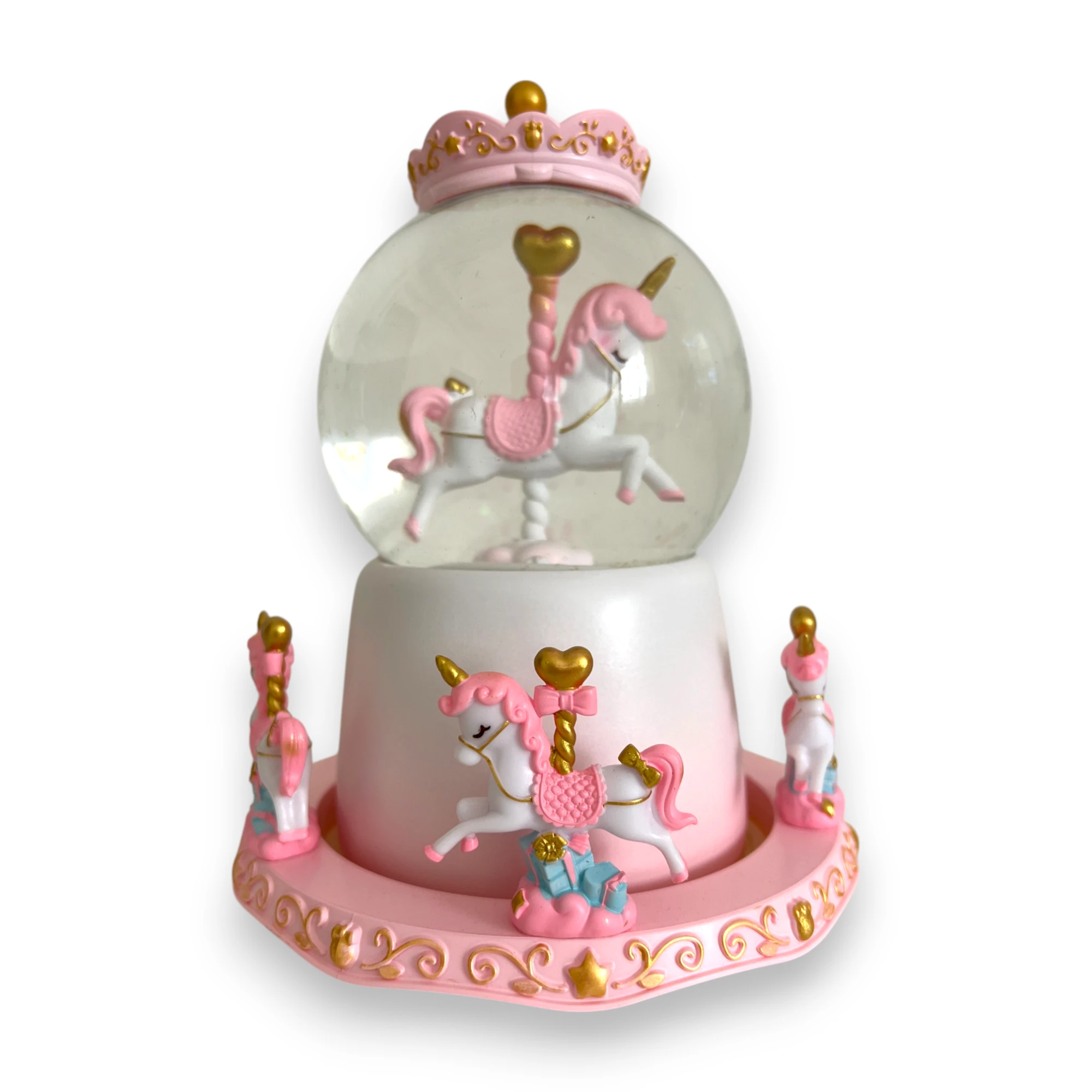 | Materyal | Cam küre + PVC/rezin unicorn figür + plastik mekanizma |