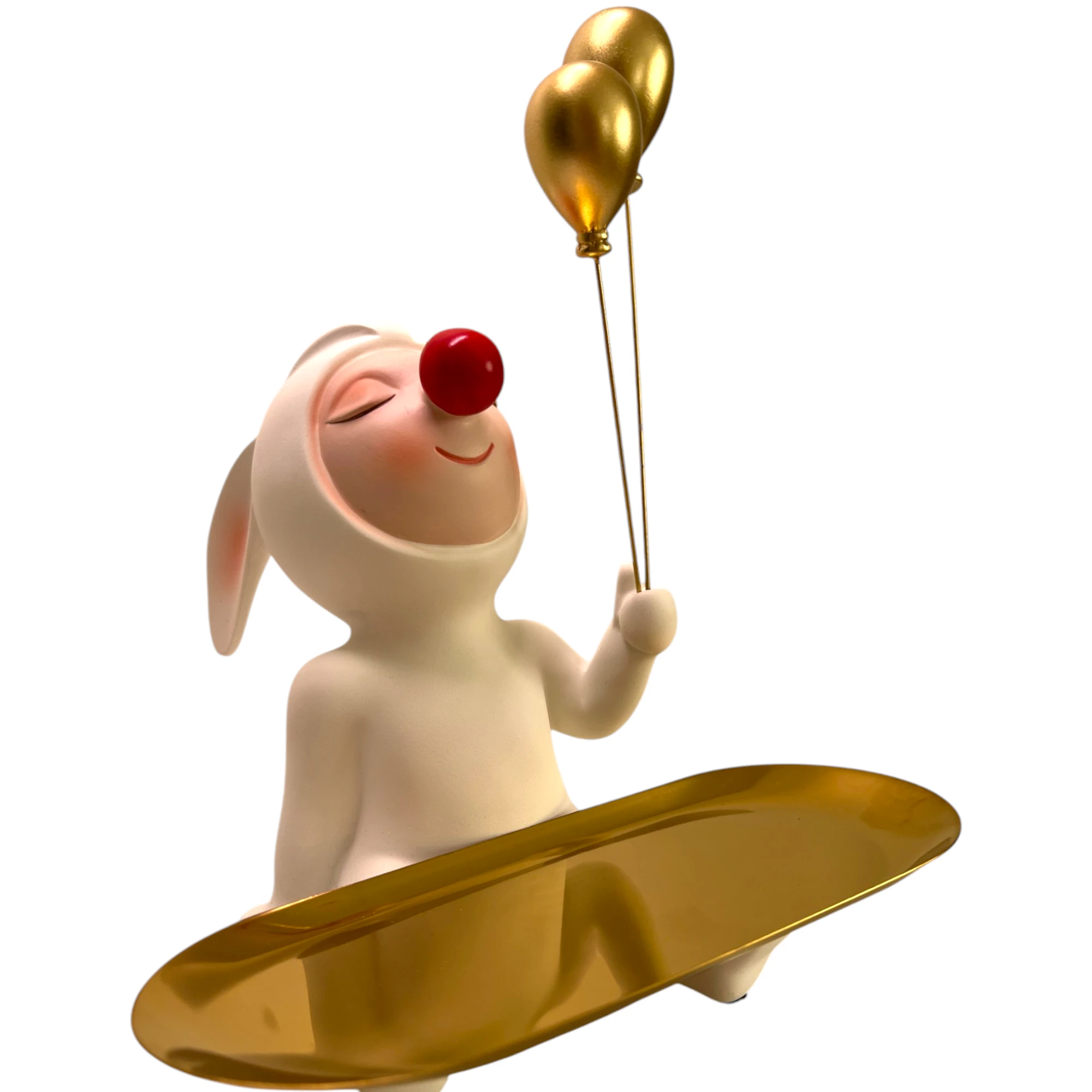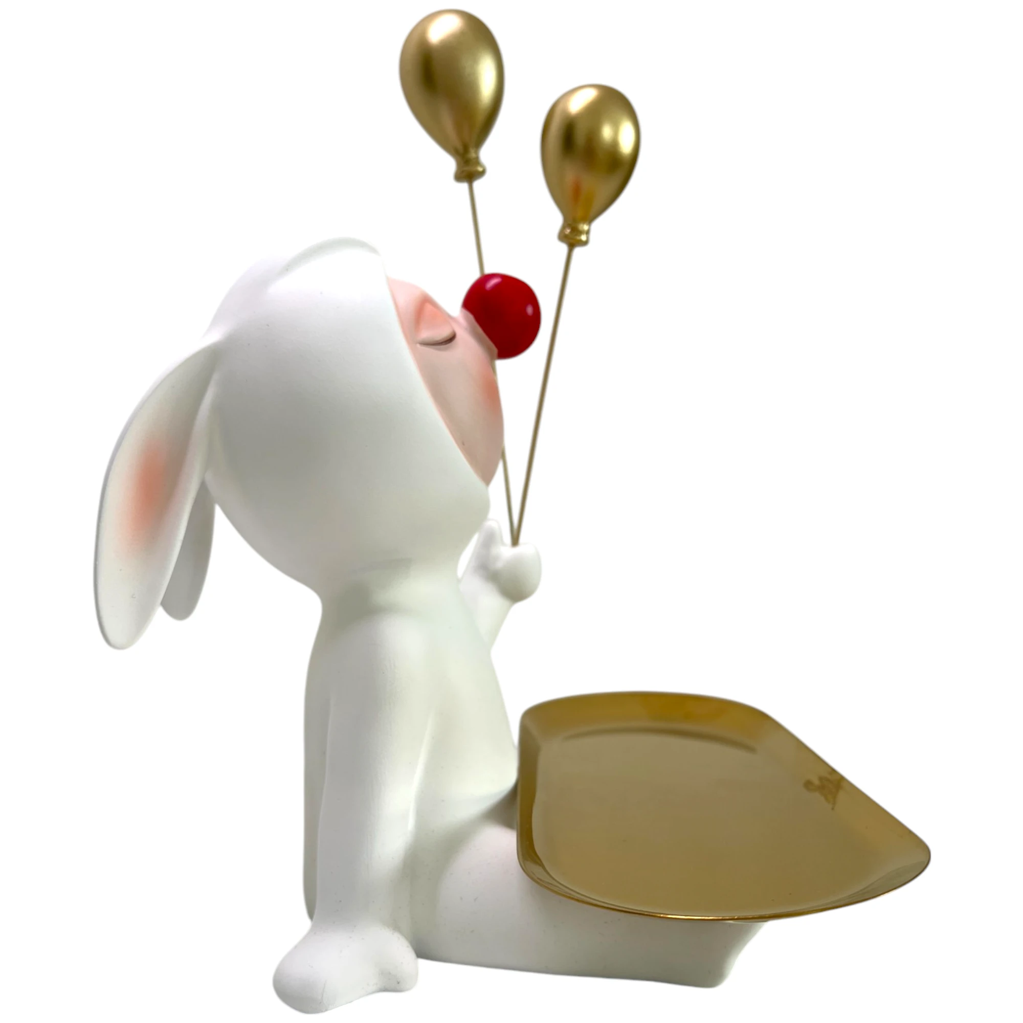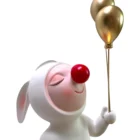 Masaüstü Dekorasyon Balon Tutan Kırmızı Burunlu Tavşan Objesi