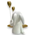 Balon tutan tavşan figürü, yüksek kaliteli reçine malzemeden üretilmiş, masaüstü dekorasyonuna neşe ve şıklık katan sevimli bir objedir. Ofis, ev veya hediye olarak kullanıma uygundur. 19.5 cm yüksekliğe ve 10 cm genişliğe sahiptir.