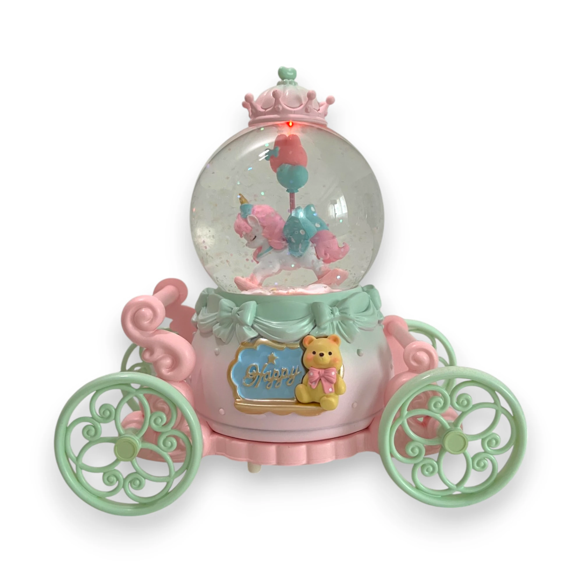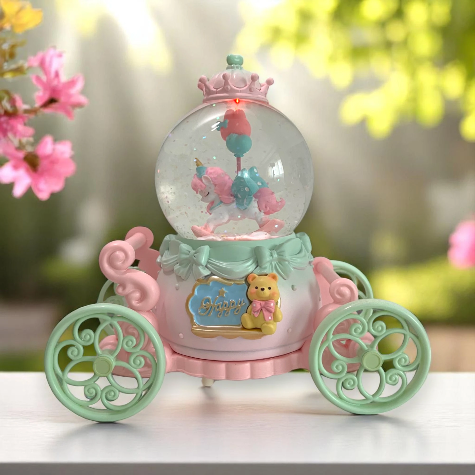 🦄 Unicorn Kar Küresi – Işıklı, Melodili, Simli ve Ferforje Araba Tasarımıyla Büyülü Bir Atmosfer