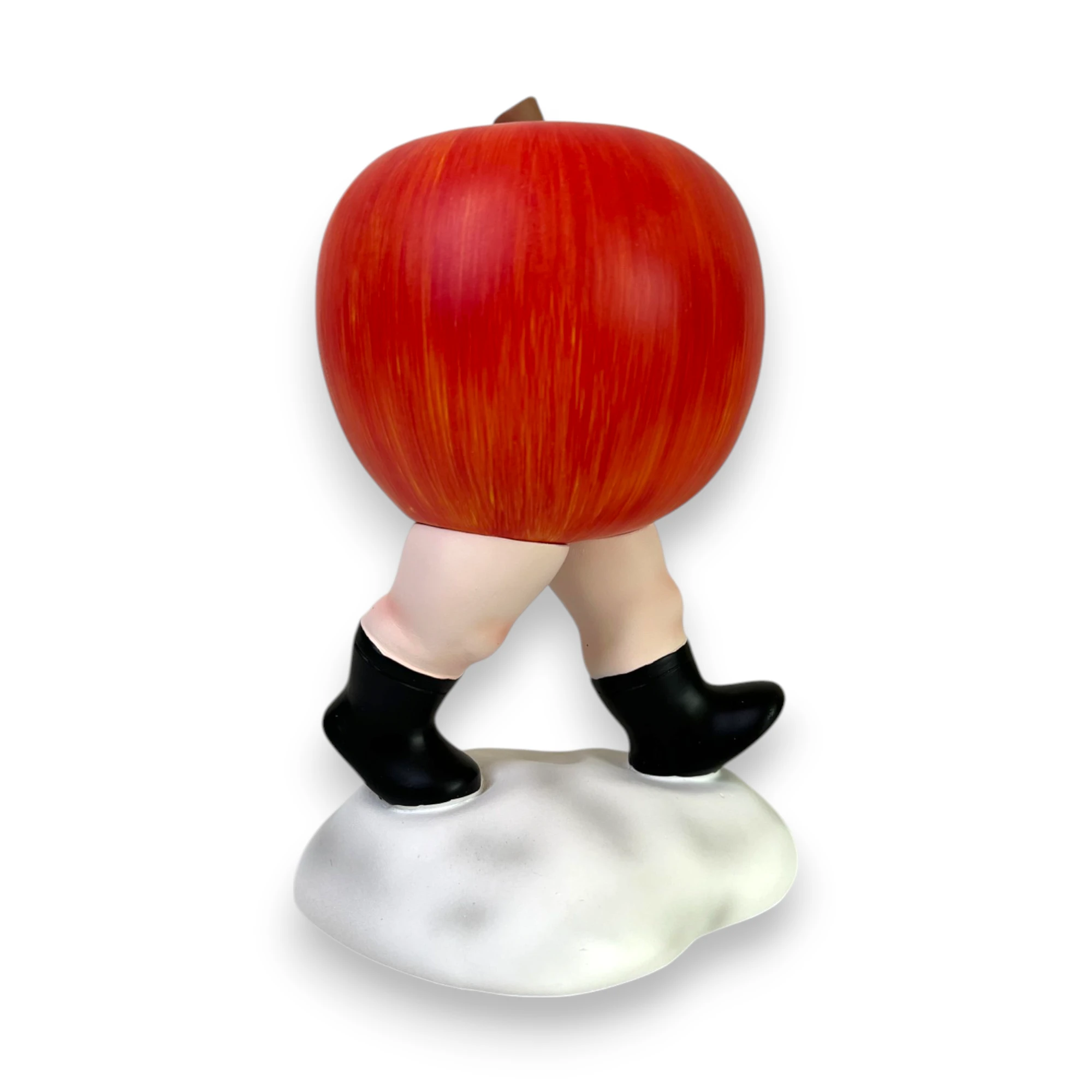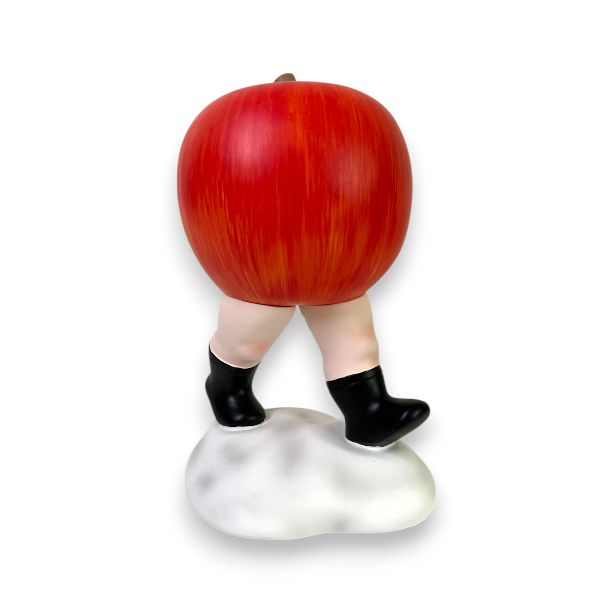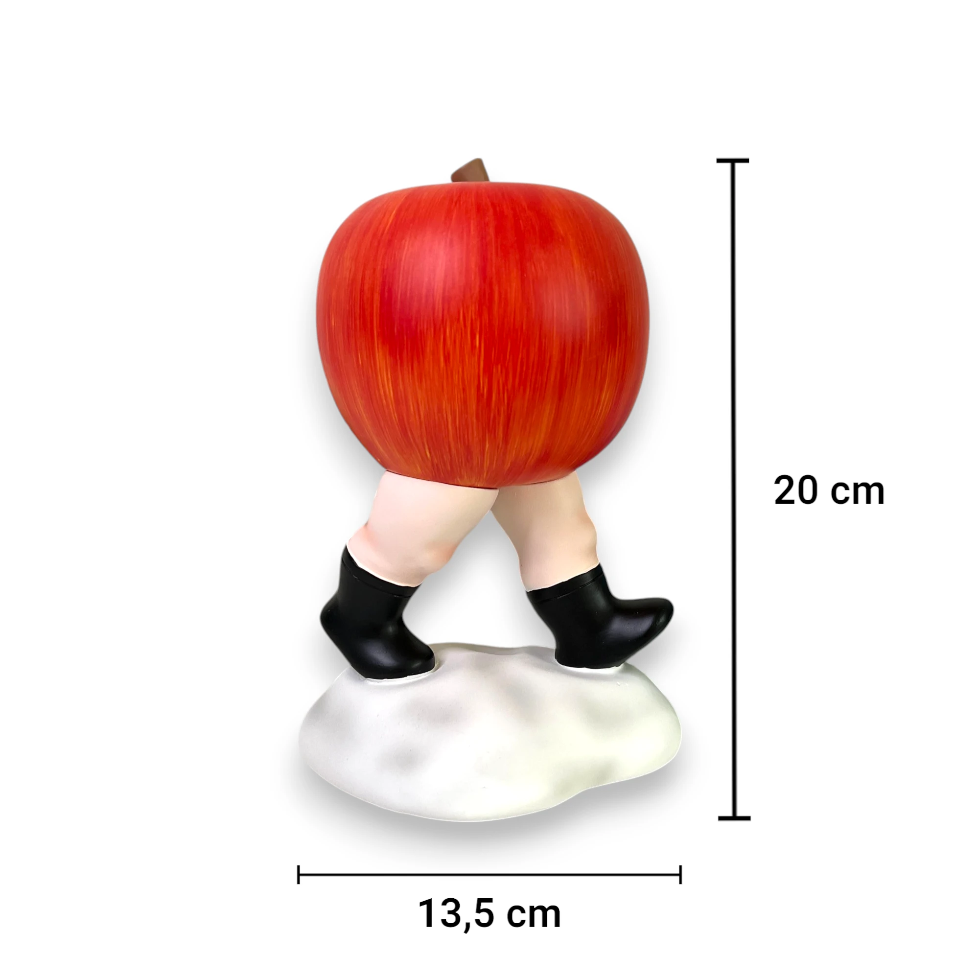 Sevimli yürüyen elma figürü, 20 x 13,5 cm boyutlarıyla masaüstü, salon veya koridor gibi alanlar için ideal dekoratif objedir. Reçine malzemeden üretilmiştir.