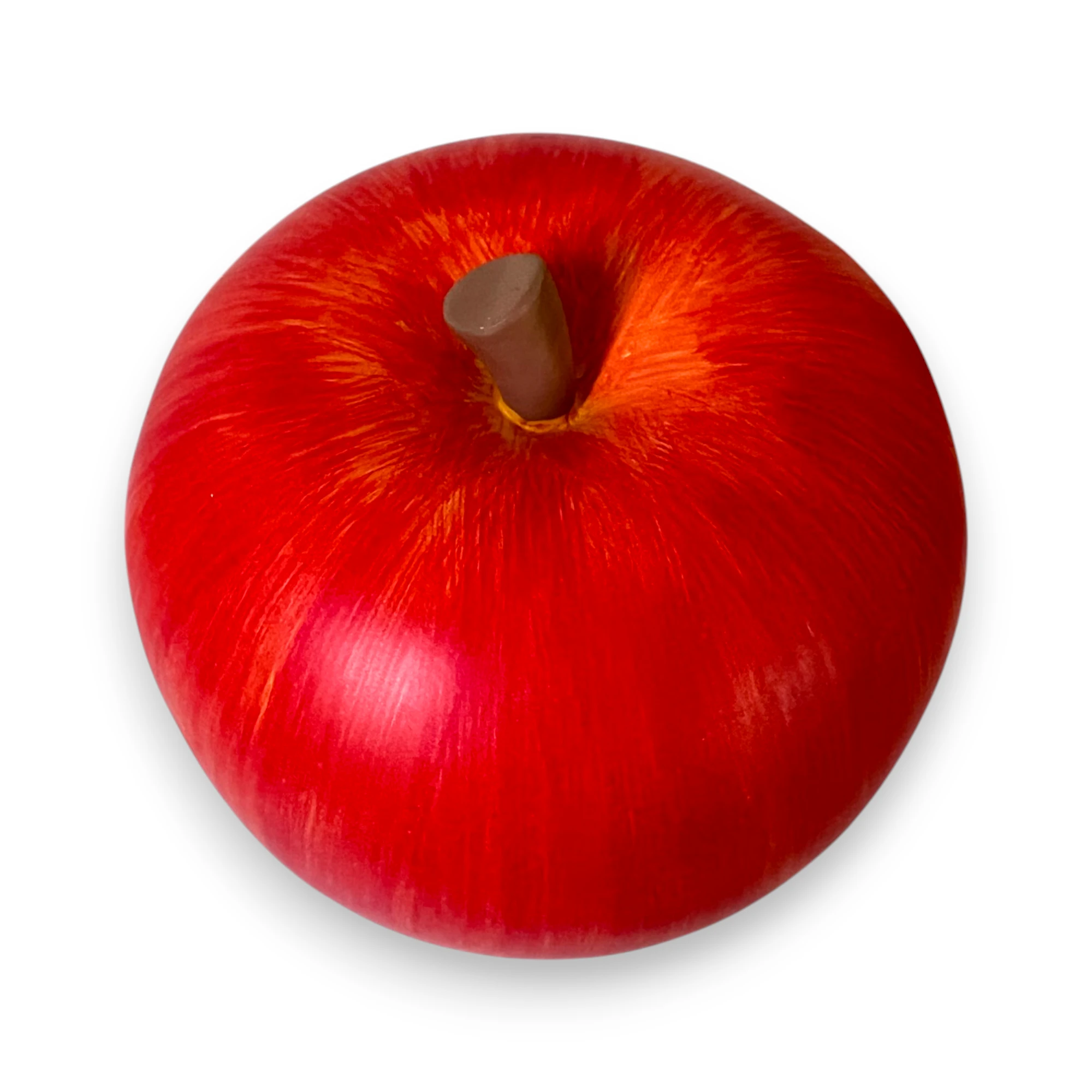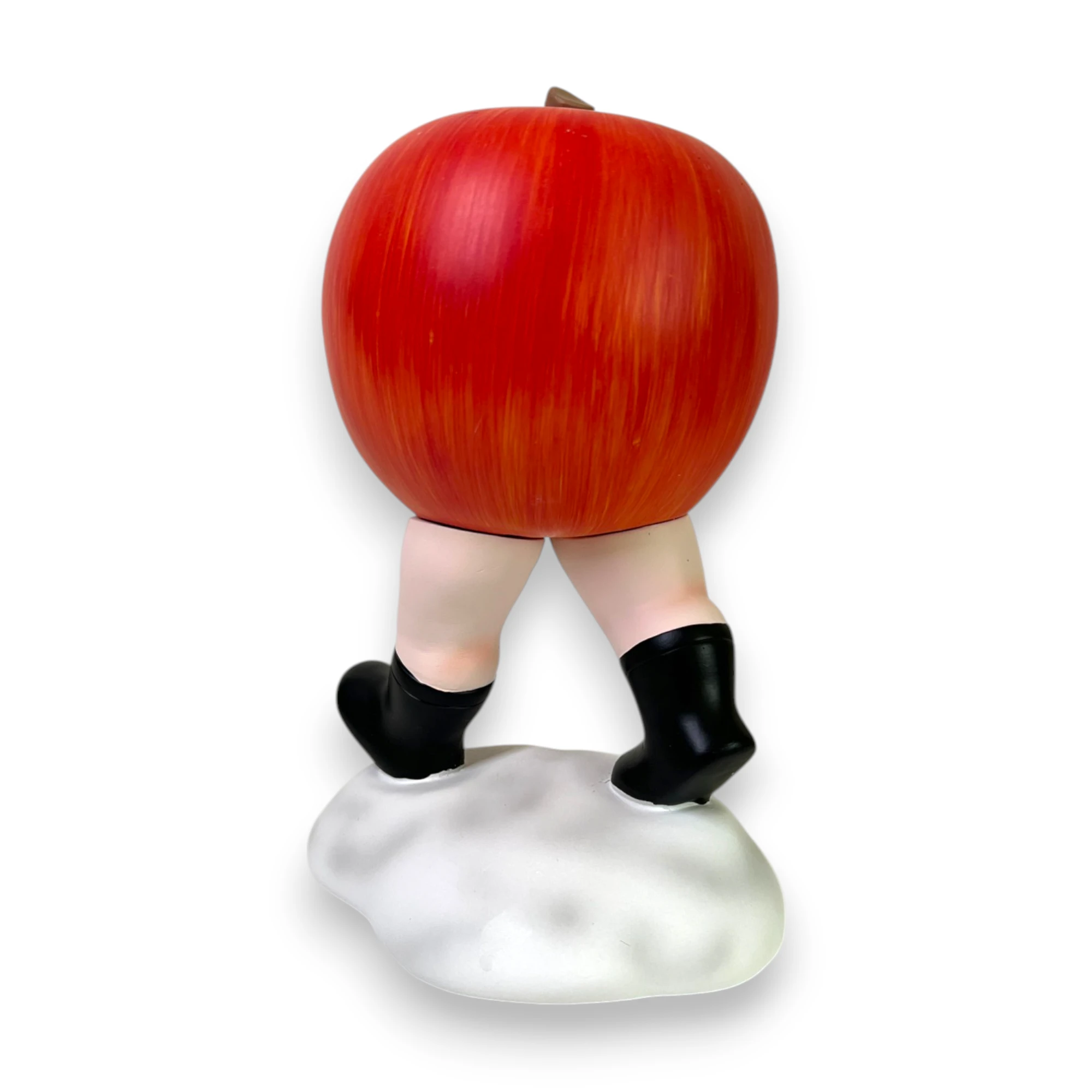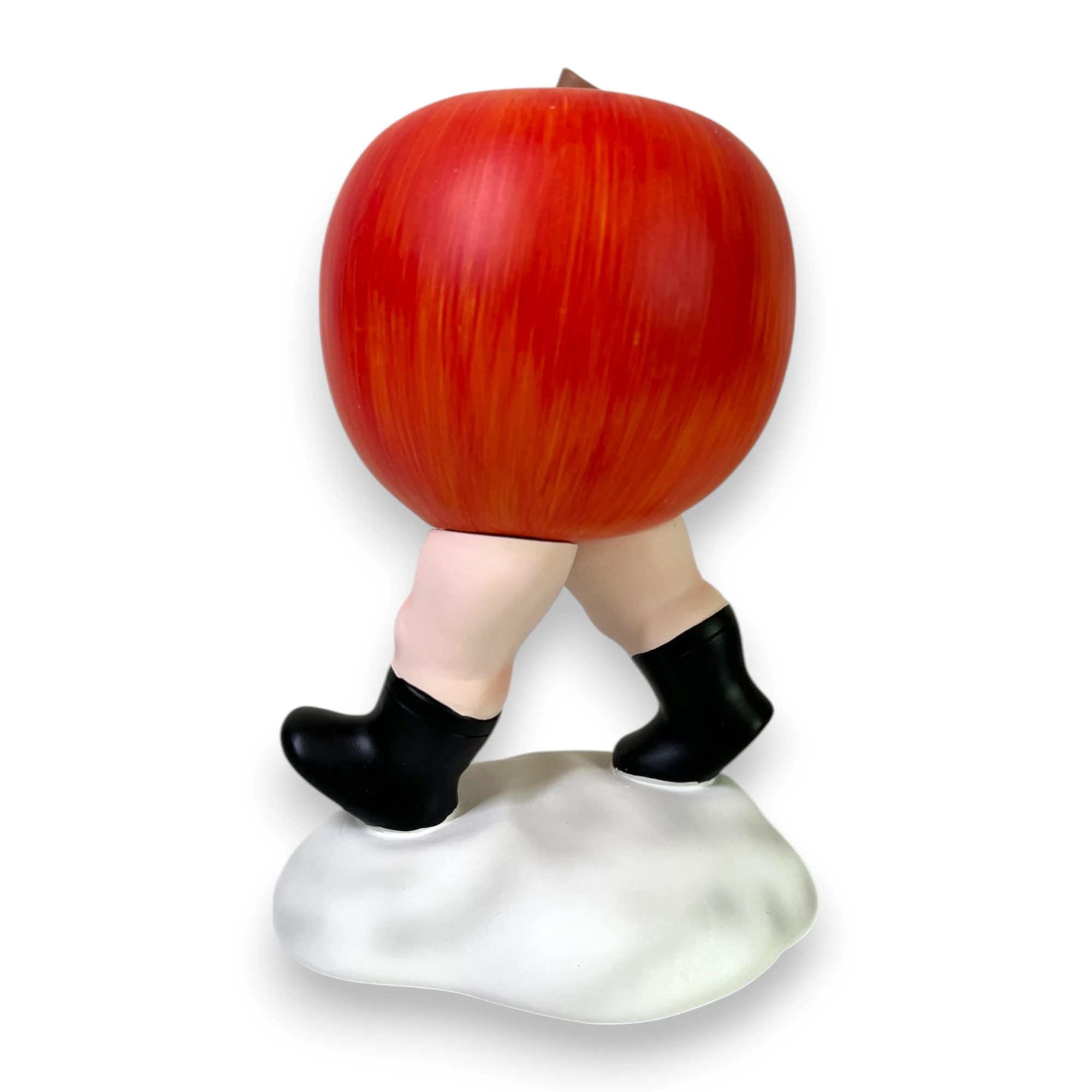 Sevimli yürüyen elma figürü, 20 x 13,5 cm boyutlarıyla masaüstü, salon veya koridor gibi alanlar için ideal dekoratif objedir. Reçine malzemeden üretilmiştir.