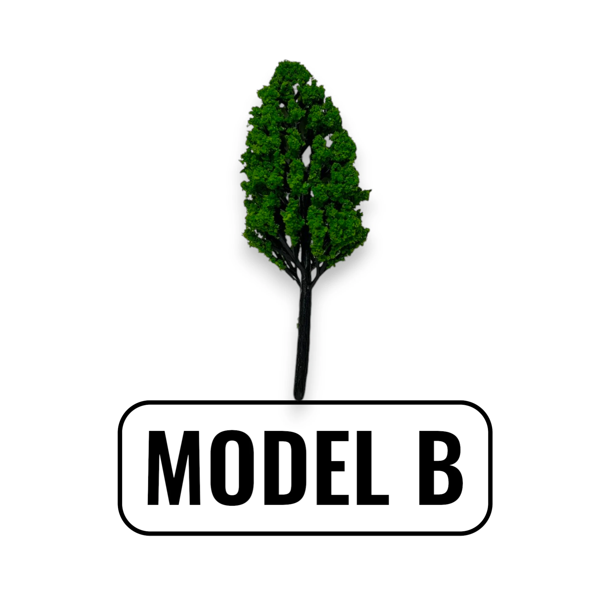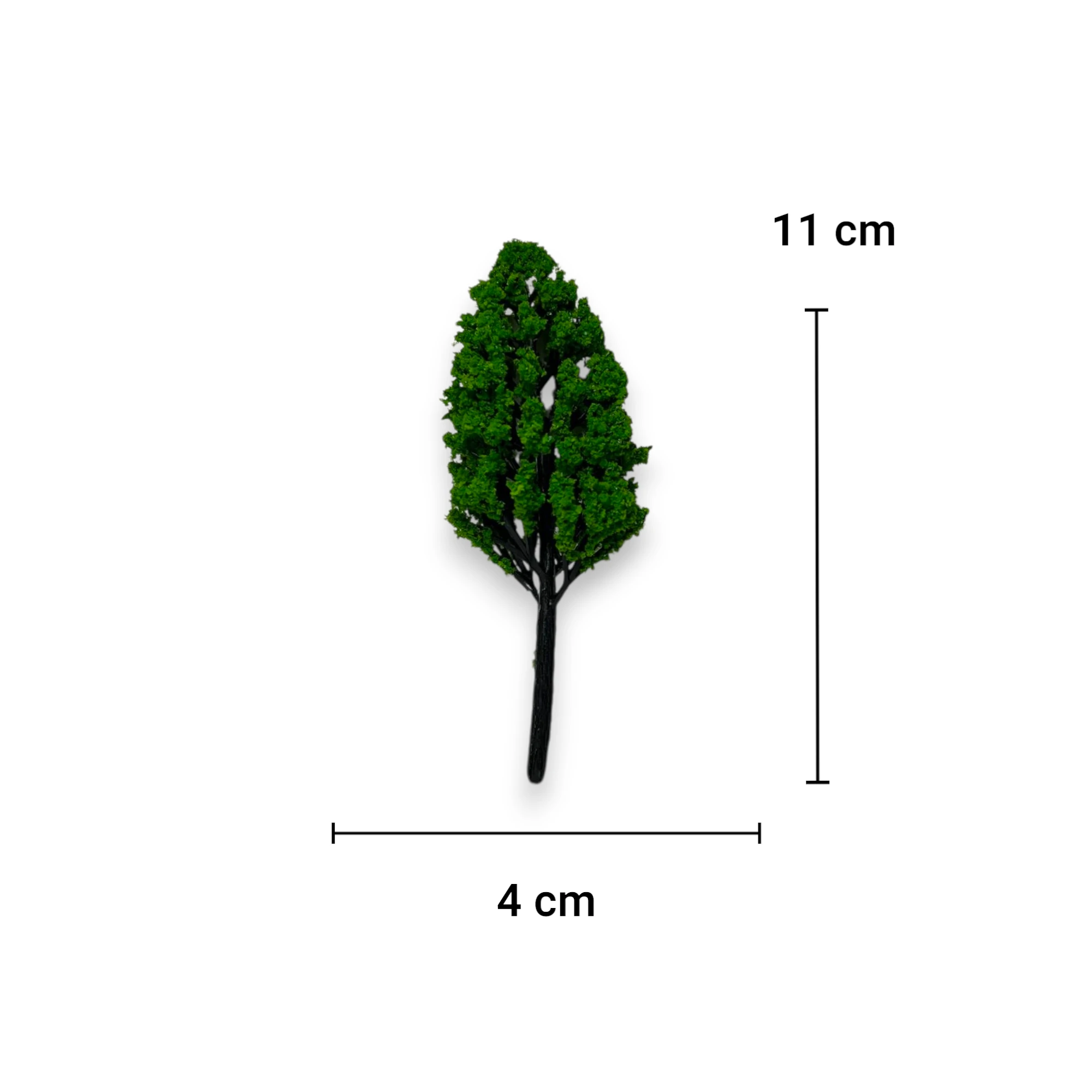 • Yeşil ağaçlar (Model B) yaklaşık 4 cm genişliğinde ve 11 cm yüksekliğindedir.