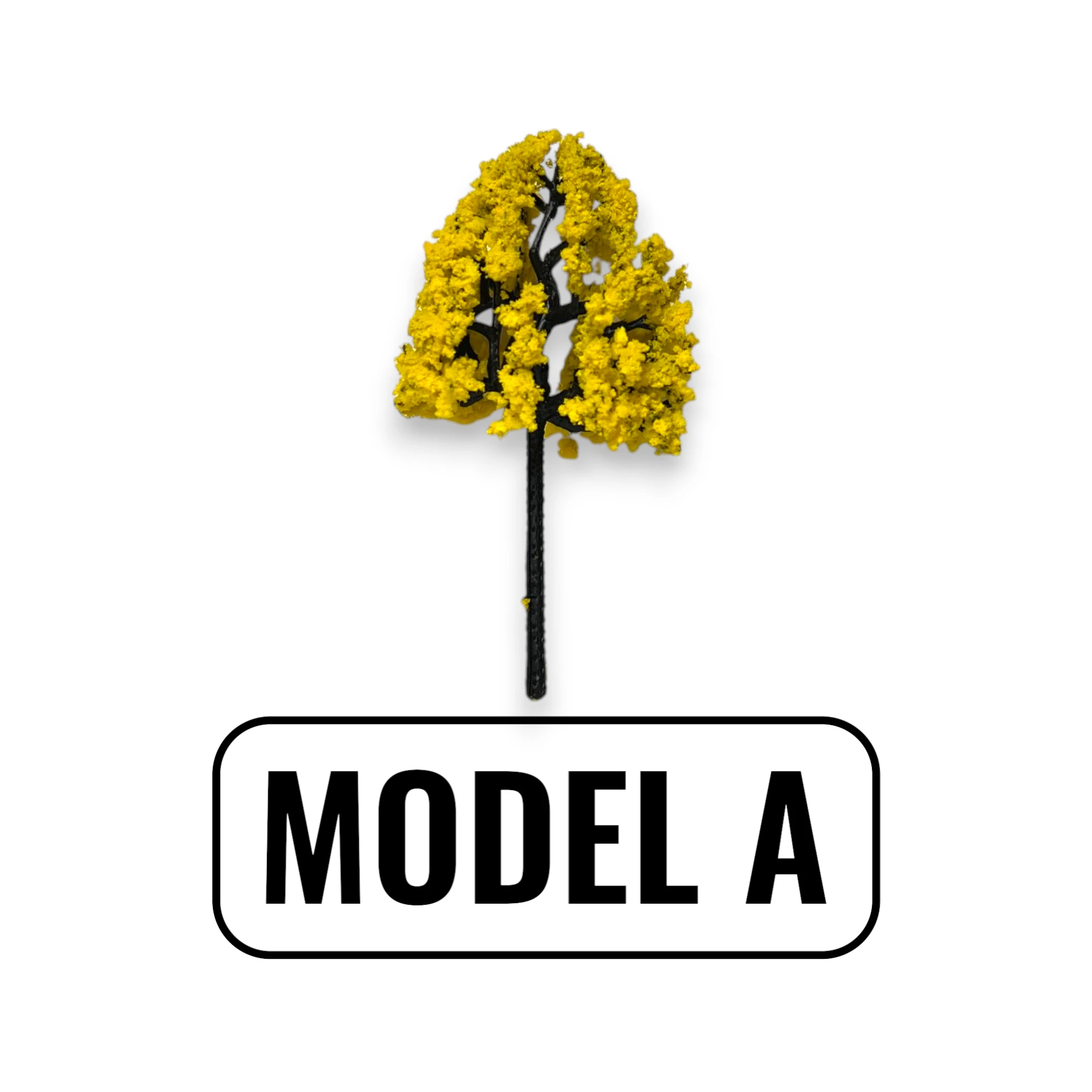 • Sarı ağaçlar (Model A) yaklaşık 5 cm genişliğinde ve 10 cm yüksekliğindedir.