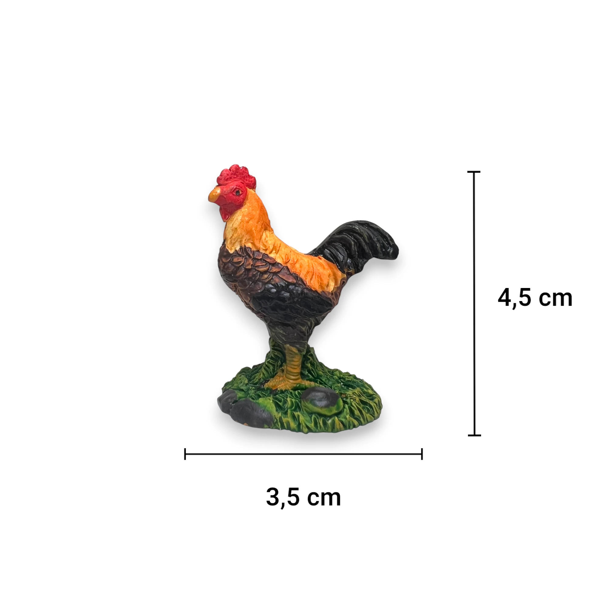 Üstelik, Minyatür Horoz Figürü, gerçekçi detayları ve özenli boyamasıyla beğeni toplar. Canlı kırmızı ibiği, parlak turuncu ve siyah tüyleriyle dikkat çeker. PVC malzemeden ürettiğimiz bu figür yüksek kaliteli ve dayanıklıdır. Dolayısıyla, ürününüz uzun süre dayanıklılığını korur. Buna ek olarak, yüzeyi kolayca toz tutmaz ve pratik bir şekilde temizleyebilirsiniz.